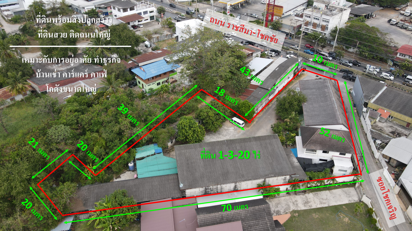 ขายที่ดินพร้อมสิ่งปลูกสร้างราคาถูก พื้นที่ 1-3-20 ไร่ ที่ดินสวย พื้นที่กว้าง ติดถนนใหญ่ เหมาะกับการอยู่อาศัยและทำธุรกิจค้าขาย บ้านเช่า คาร์แคร์ คาเฟ่ โกดังเก็บของขนาดใหญ่ กว้างขวาง